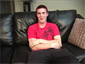 Derrick showed up for his shoot with his hair dyed red, much to my surprise (and my friend's). He's a bit of a shy one, but another big surprise came when he lapped up his load.