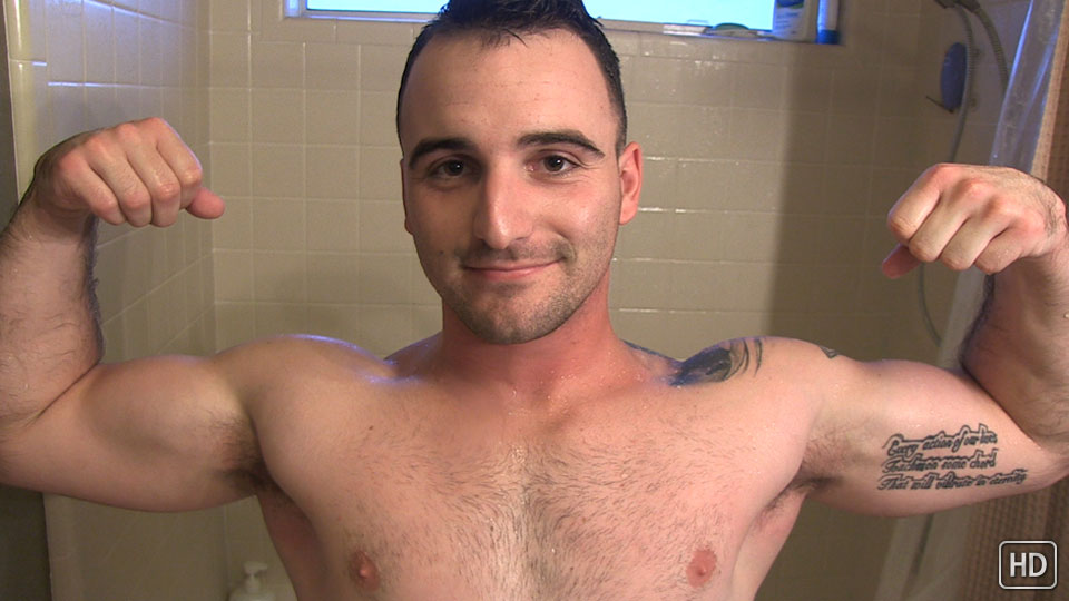 Tom goes into the details of his tats, shaving his chest (and how fast his hair grows in), and the compliments he gets from girls on his nicely-shaped dick. A quick after-shower piss and some naked flexing is all in a day's work around here.
